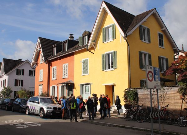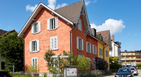 Beide Häuser wurden danach umfassend renoviert und die beiden Treppenhäuser in ein einziges verlegt, sodass zusätzlicher Wohnraum entstand. Bei der Renovation wurden die Badezimmer und Küchen saniert, die Räume besser aufgeteilt und alle Installationen erneuert. Die Aussenwände wurden isoliert, eine kontrollierte Lüftung eingebaut und Solarkollektoren angebracht. So erfüllt unser Haus heute den Minergie-Standard. Alle Wohnungen haben ausserdem einen grossen, neuen Balkon. Der Garten hinter dem Haus ist Spielplatz, Festgelände und Wohlfühloase in einem.