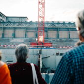 Die künftigen Bewohnerinnen und Bewohner feierten am Donnerstagabend den Baustart mit einer zündenden Show in der Baugrube: Ihren Gebäude-„Viertel“ zeichnen sie in einer Feuershow spektakulär nach. Einziehen werden sie Ende 2020.