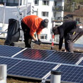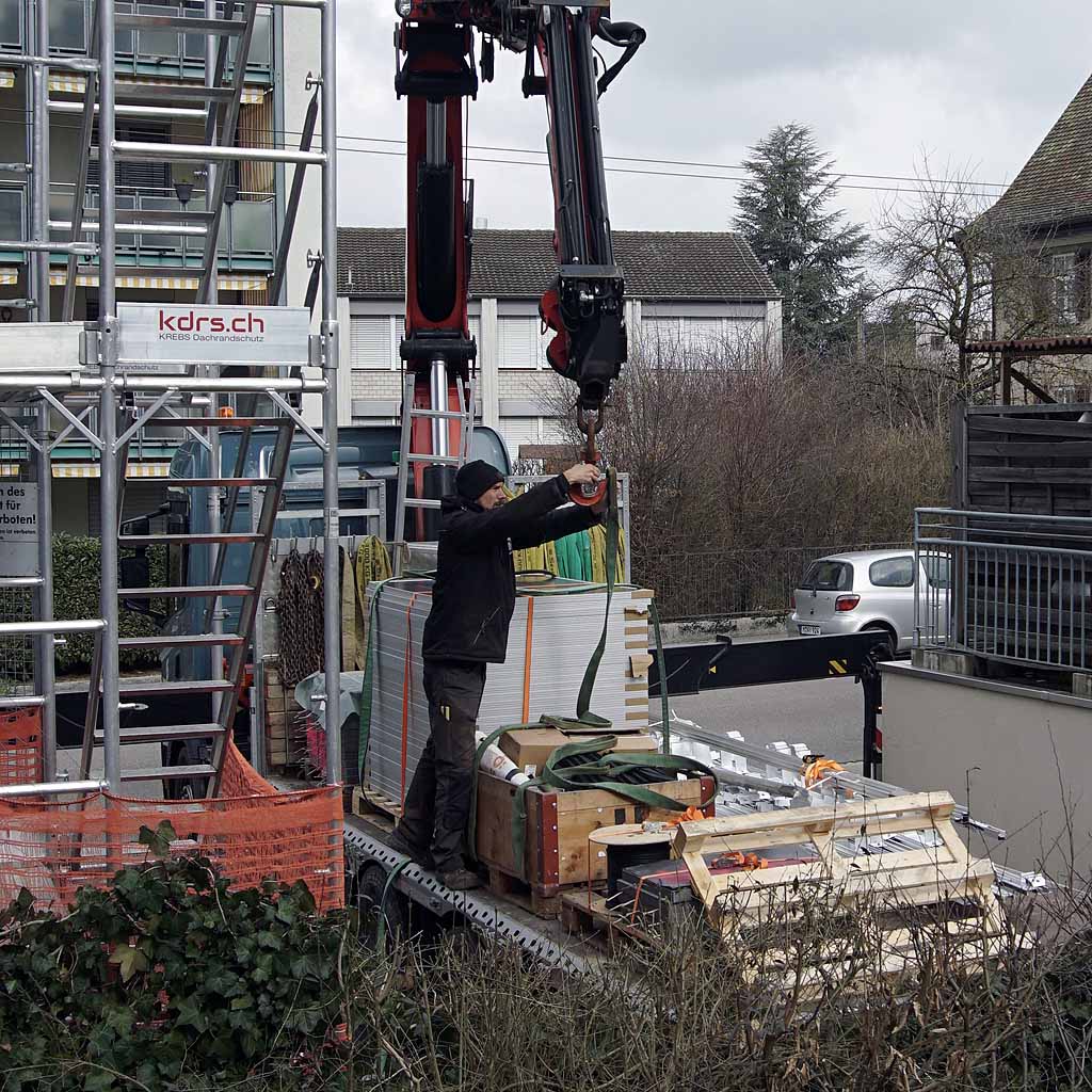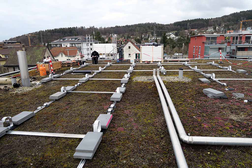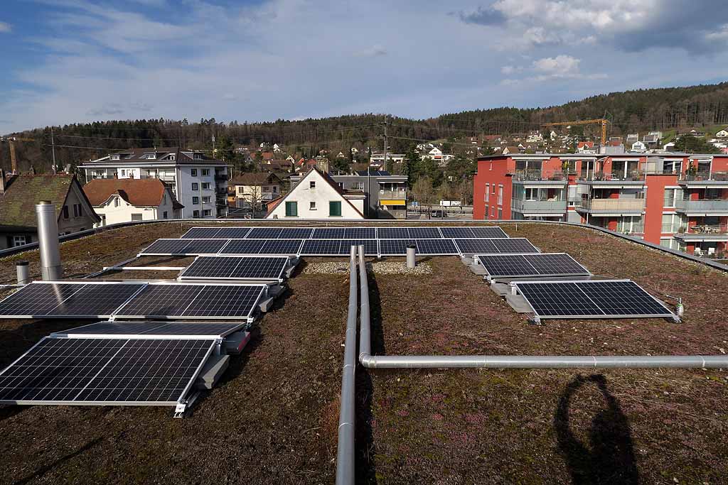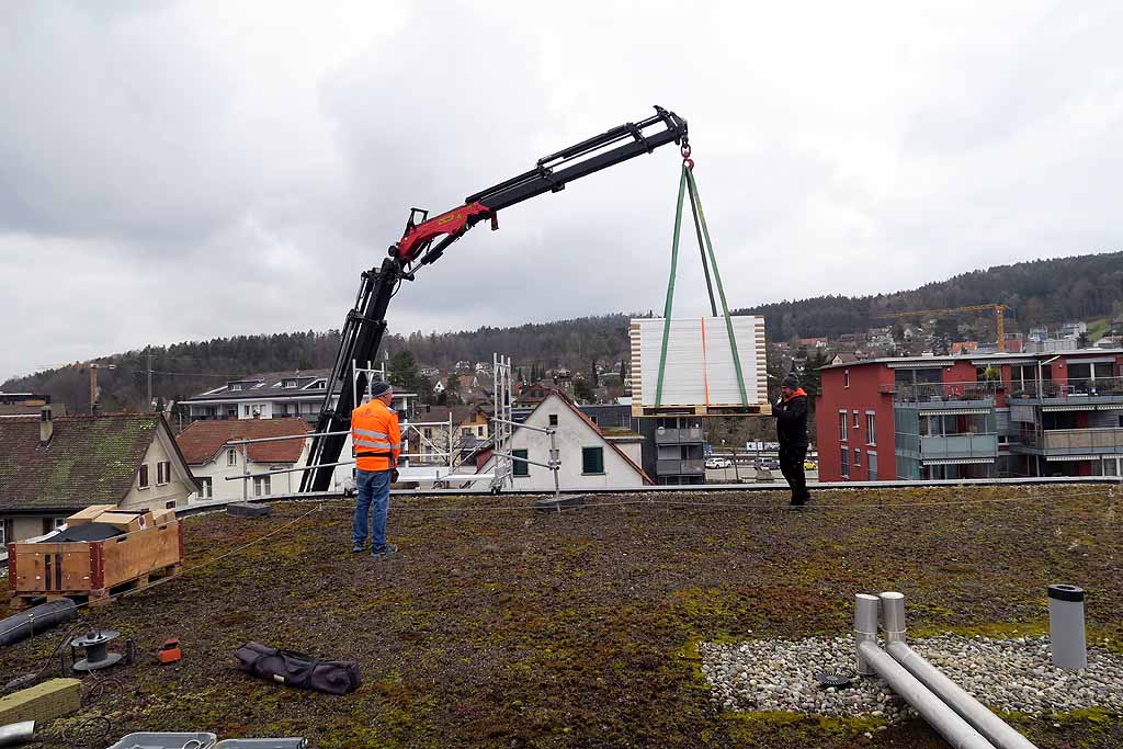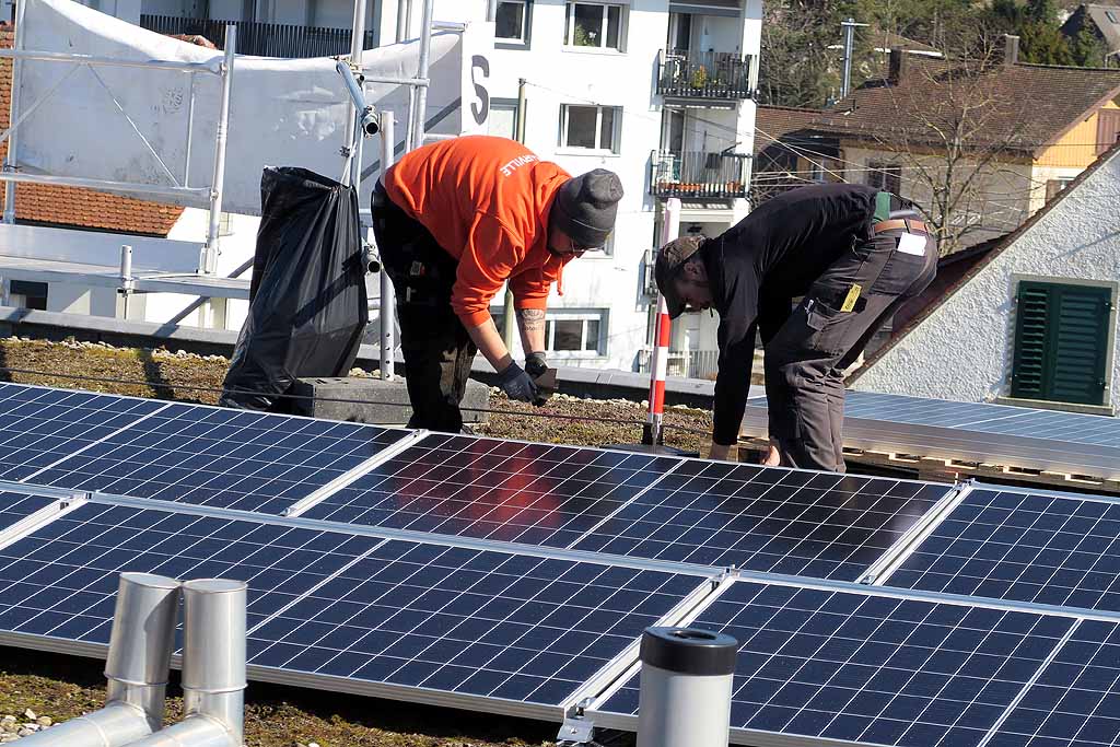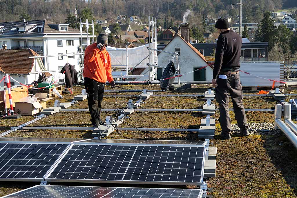 In Zusammenarbeit mit Stadtwerk Winterthur als «Contractor» wurde letzte Woche eine Solaranlage mit einer Leistung von ca. 10.5 kWp montiert. Rund ein Viertel der erzeugten Solarenergie nutzt die Kanzlei-Seen kostenlos selber, die restlichen drei Viertel stehen dem Contractor zur freien Verfügung. Die Bewohnenden der Kanzlei-Seen bezahlen dafür pauschal 130 Franken pro Monat. Dieser Preis deckt auch die Finanzierung, Erstellung und Instandhaltung der Fotovoltaikanlage sowie Sanierungen und Ersatzinvestitionen.