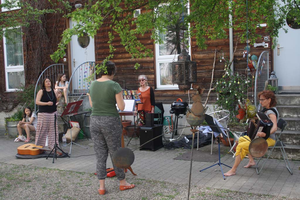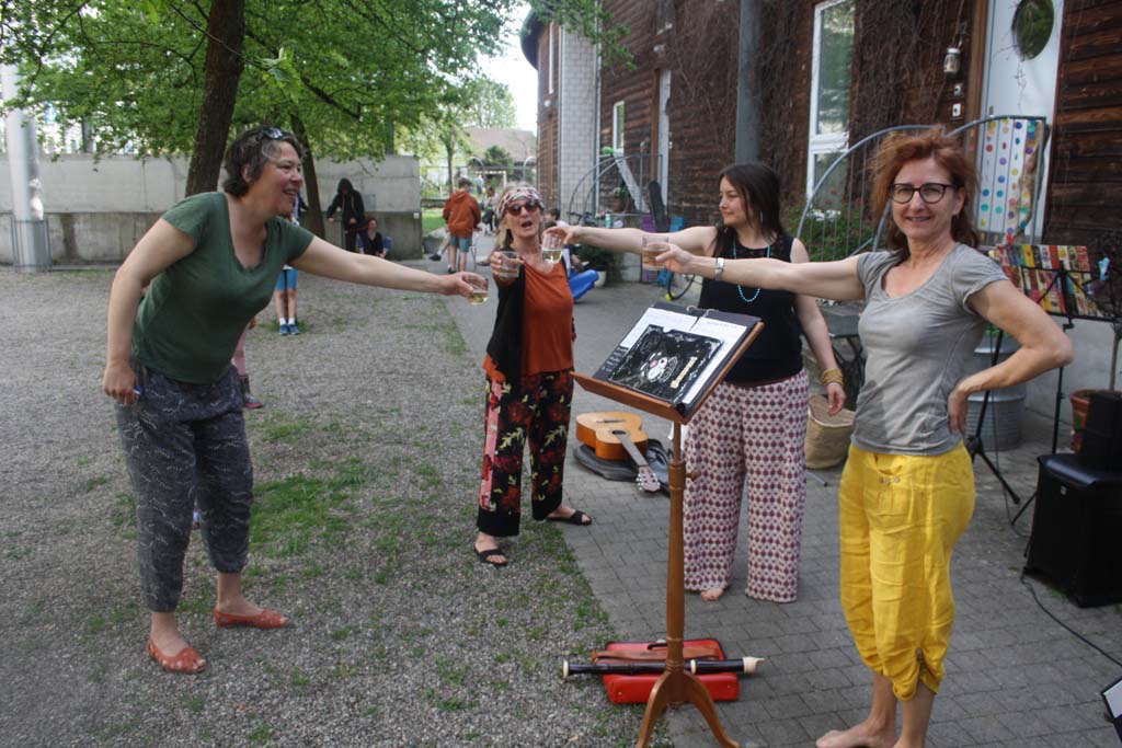 Zu Ehren unserer blühenden Linden findet jährlich unser «Lindenbrunch» statt, der stets auch mit musikalischen Überraschungen aus dem Kreis unserer BewohnerInnen aufwartet: Inspiriert von der amerikanischen Amateurin Florence Foster Jenkins, die trotz ihrer alles andere als überragenden Musikalität unverfroren vors Publikum trat, beschlossen unsere vier Prachtladies Sonja Waibel Breu (Stimme/Gitarre), Béatrice Herbst (Stimme/Perkussion), Patrizia Koschek (Stimme/Flöten) und Claudia Schwarzenbach (Akkordeon) an jenem schicksalshaften Lindenbrunch 2017, es ihr gleich zu tun.