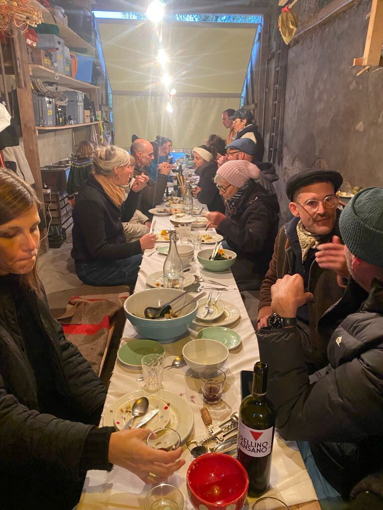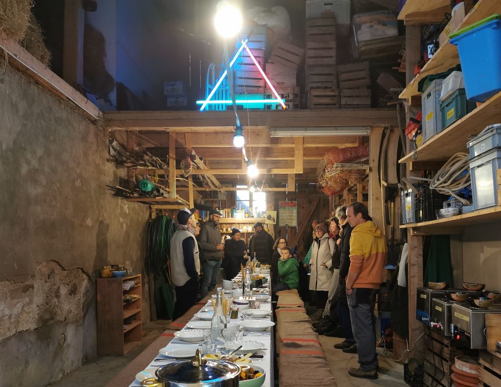 «Mehr als vierzig Menschen haben an den zwei langen, langen Tischen in der Alten Bäckerei getafelt: der eine war im leergeräumten kühlen Tenn, der andere in der gemütlich geheizten Loge.