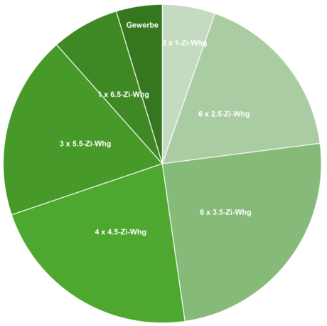 - ca. ein Gewerberaum à 80 m2 im Erdgeschoss, der auch als Wohnung genutzt werden könnte.