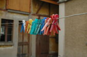 Im Hinterhaus wurde eine recht offen gestaltete, zweigeschossige Wohnung eingebaut. Sie ist auch als Wohnung mit Atelierbereich im Erdgeschoss nutzbar. Das Erdgeschoss verfügt über einen pflegeleichten und strapazierbaren „Steinholzboden„ und im Obergeschoss über einen Eichenparkett. Die grosse Wohnküche verfügt über einen direkten Ausgang zum gemeinsamen Hofplatz, auf welchem in den warmen Jahreszeiten hauptsächlich das Gemeinschaftsleben stattfindet. Die dazugehörigen Nebenräume befinden sich im grossen Wohnhaus.